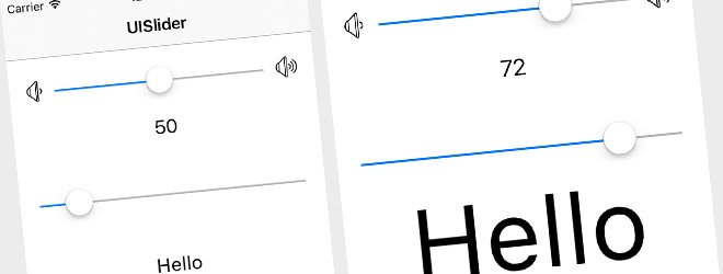Sample project demonstrate how to use UISlider within Swift 2, Xcode 7, iOS 9 application. It shows how to read slider value, use it for change font size etc.